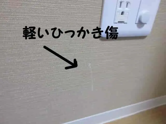 壁紙に軽くひっかいたような傷がついています。茶系のアクセントクロスなので目立ちます。
