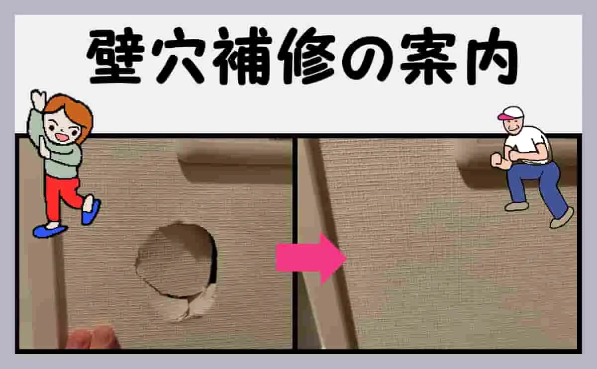「壁穴補修の案内」のアイキャッチです。ポリバレンテの壁穴補修についての案内です。料金や工法の説明など、壁穴補修に関することを豊富に紹介しています。 【壁穴・壁紙補修は「1万円から」|ポリバレンテ】
