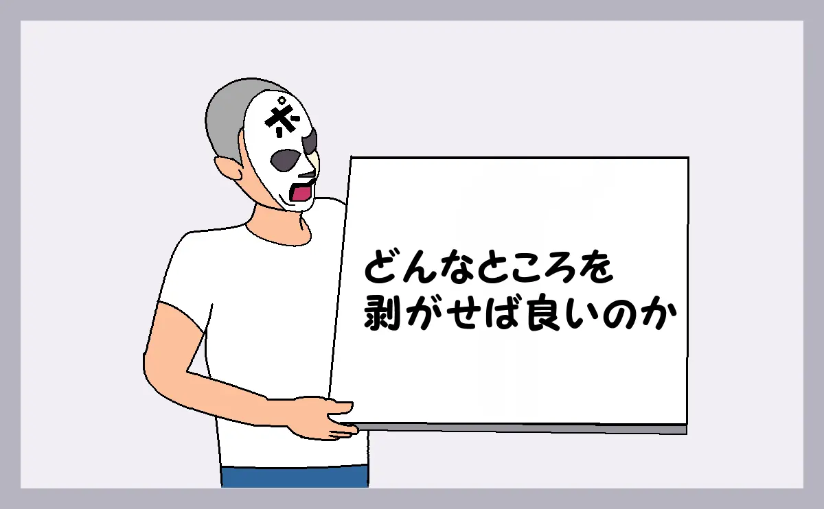 「どんなところを剥がせば良いのか」のアイキャッチです。壁紙補修の際に、補修用の壁紙として剥がす場所の定義を解説したページです。 【壁穴・壁紙補修は「1万円から」|ポリバレンテ】
